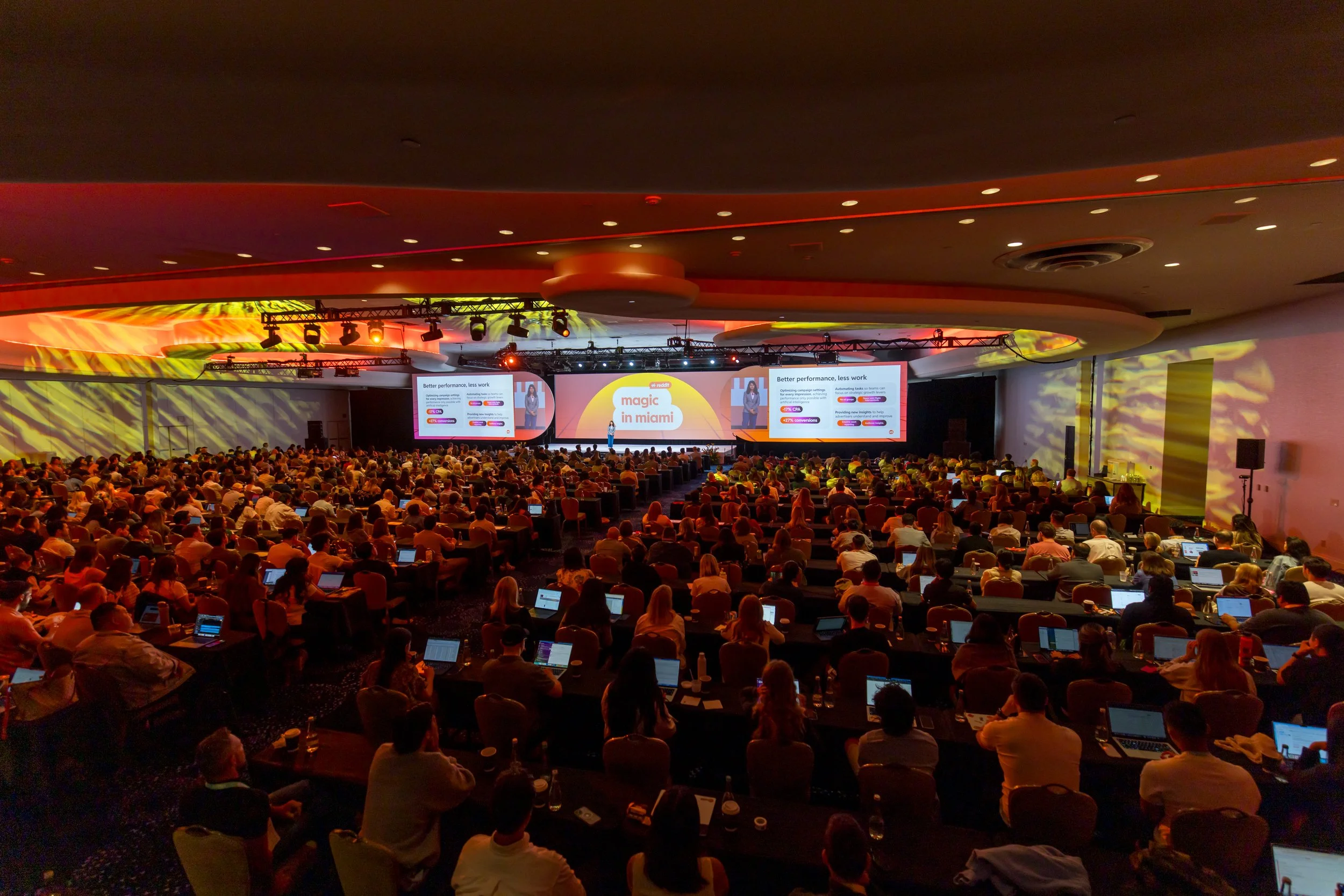 We teamed up with Reddit to bring their annual Sales Kick Off to life at the iconic Fontainebleau in Miami Beach. With over 700 attendees, we managed every detail—from hotel accommodations and food & beverage, to full-scale production, creative direction, and technical oversight. Our team led the stage design and technical direction for Reddit’s two-day General Session, ensuring a visually dynamic environment paired with seamless A/V execution and show flow. The multi-day experience also included a high-energy welcome reception, curated lunches across the property, elegant dinners, and a custom-branded takeover of LIV Nightclub. To infuse the event with Reddit’s unique culture, we wove platform references, inside jokes, and community easter eggs throughout the decor—blending playful storytelling with high-impact design and flawless execution.